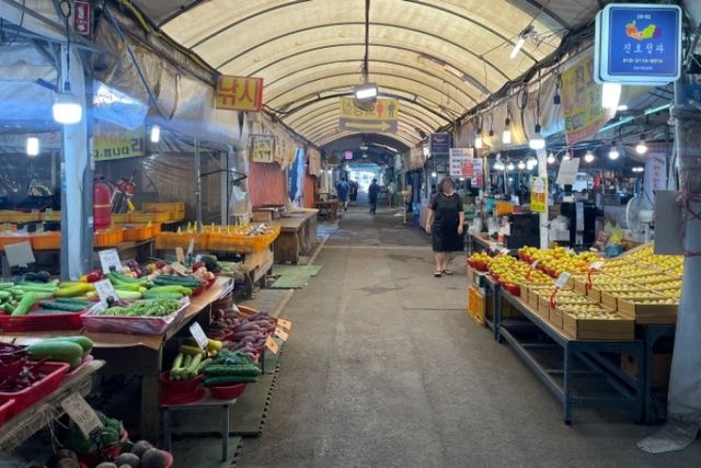 상인들은 연신 부채질을 해대며 손님을 기다렸다. 냉방기 설치가 어려워 선풍기에만 의지한 채 겨우 더위를 견디고 있었다. 푹푹 찌는 더위에 채소가 시들까 봐 물을 뿌려대는 상인도 있었다.