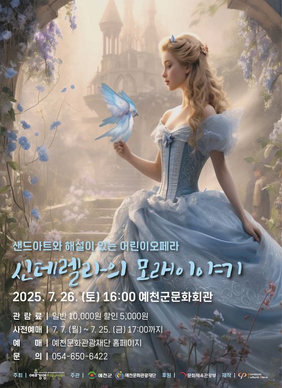 예천군과 (재)예천문화관광재단(이사장 김학동 예천군수)은 이달 26일 오후 4시, 예천군문화회관에서 어린이와 가족을 위한 감성 가득한 공연인 ‘신데렐라의 모래이야기’를 선보인다.