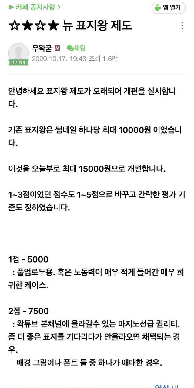 이건 표지왕이라고 섬네일 받는건데 최고점 받아도 15,000원임