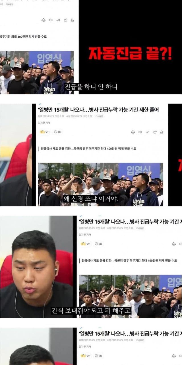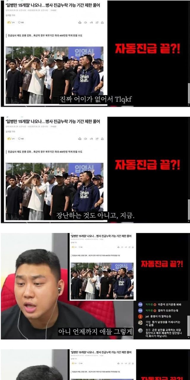 부모들의 청원및 항의전화를 견디다못한 국방부가 병 자동진급폐지 보류했다고 기사뜸 ㅋㅋㅋㅋ