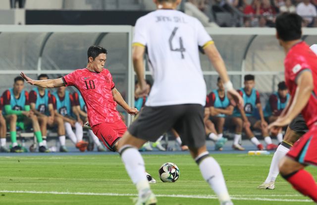 이동경의 A매치 2호 골. 그가 A매치에서 득점한 건 지난 2021년 국제축구연맹(FIFA) 카타르 월드컵 2차 예선 스리랑카전 이후 4년 만이다.
