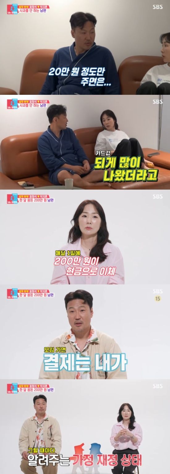 이에 정형석은 "용돈을 좀 올려줘야할 때가 된거 아닐까?"라고 조심스럽게 얘기를 꺼냈고, 이에 박지윤은 "누가 용돈으로 200만원 주냐. 오빠 혼자 쓰는 돈으로 200만원을 받고 있는 거 아니냐. 자동차 기름 넣는 돈은 따로 카드를 주지 않았냐"고 받아쳤다.