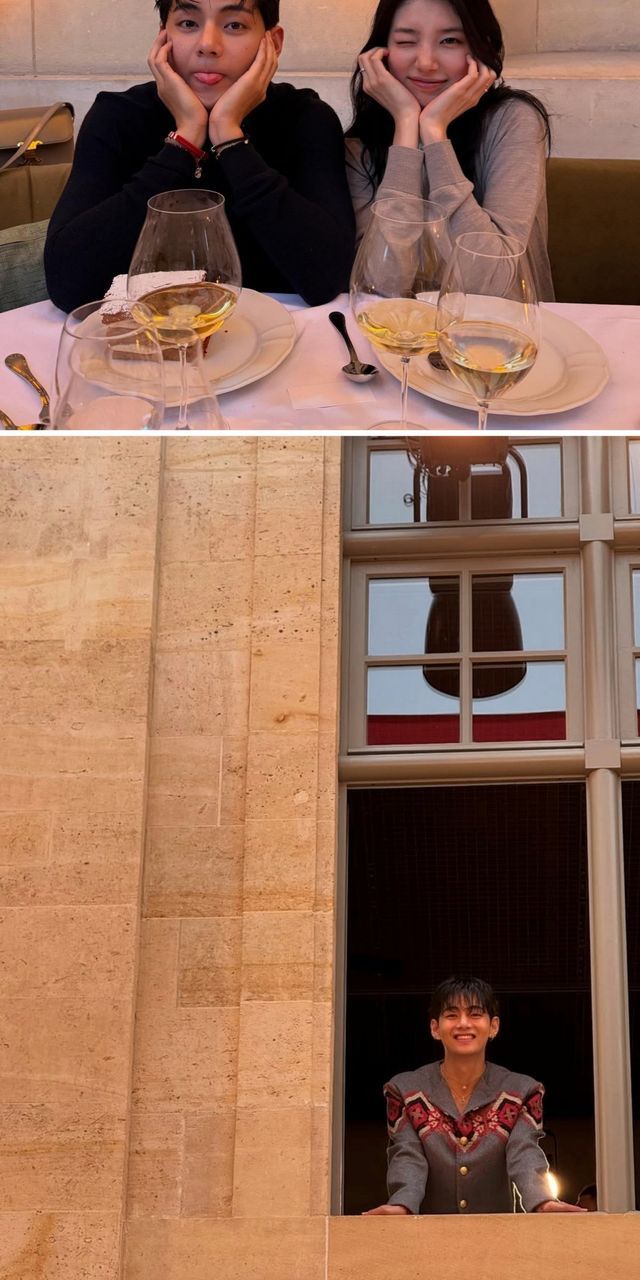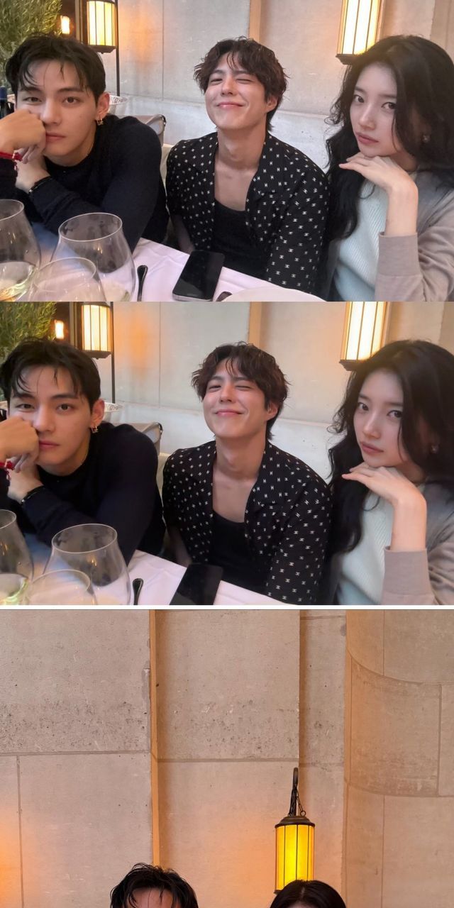 뷔와 박보검은 지난 2017년 제주도 여행 당시 찍었던 포즈를 재현하며 오랜 우정의 깊이를 다시금 보여줬다. 수지와는 꽃받침 포즈 등 다양한 포즈를 취하며 마치 실제 화보 같은 장면을 연출했다.