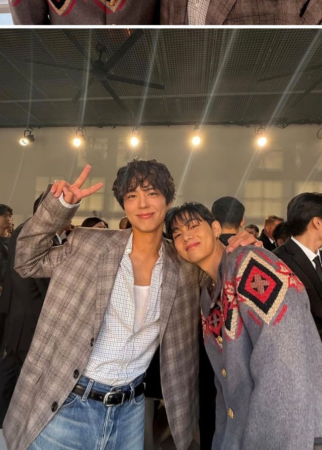 뷔와 박보검은 10년 이상 우정을 이어오고 있는 절친으로 유명하다. 패션위크 기간 동안에도 서로를 챙기는 모습이 포착됐다. 뷔가 창밖에 앉아 박보검을 향해 환하게 웃고 있는 사진은 박보검이 뷔를 찾다가 그의 이름을 부르는 모습을 포착한 것이라고 알려졌다.