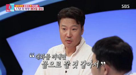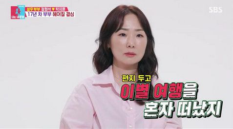 박지윤은 “서운한 게 있을 때 바로 말하는 성격이 아니다 보니까 계속 쌓아놨던 것 같다”며 서운함이 쌓이다 보니 별거 아닌 일에도 싸우게 된다고 밝혔다. 박지윤은 과거 편지만 남기고 아이들과 이별 여행을 떠났던 일화도 공개했다. 박지윤은 가족과 함께하는 시간을 중요하게 생각하는 자신과 달리 가정에 소홀한 정형석의 모습에 “남편이 있음에도 혼자 다 하는 게 좀 버거웠는데, 없어도 내가 더 마음이 편하겠다는 생각을 했었다”며 당시를 떠올렸다.