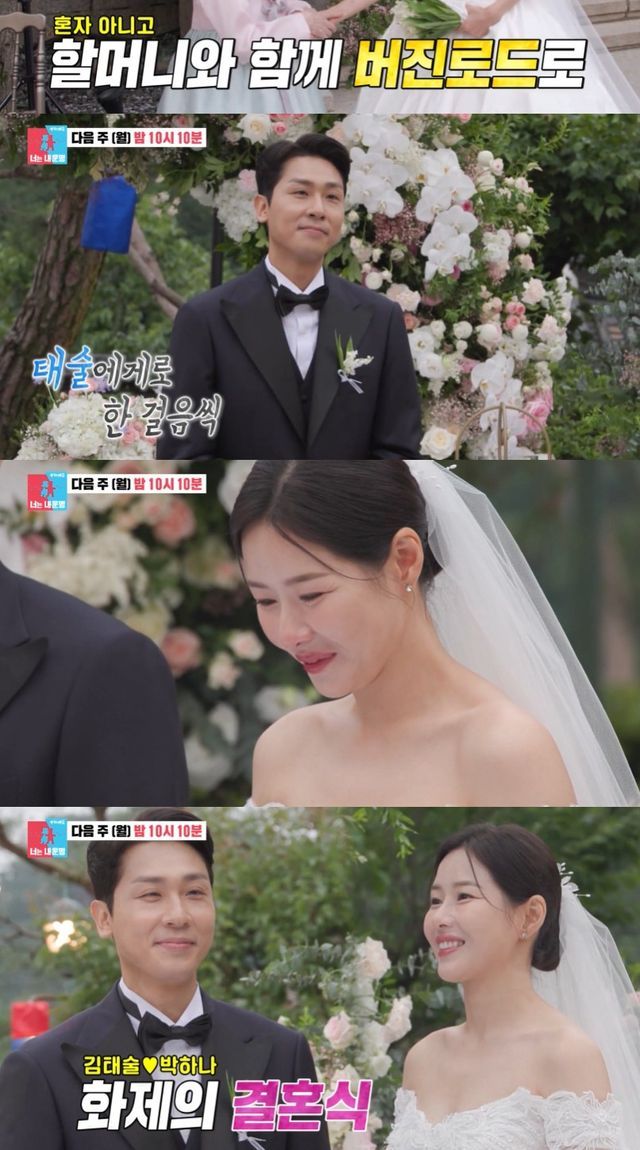 야외에서 진행된 성대한 결혼식에서 박하나는 할머니의 손을 잡고 버진로드를 걸어 감동을 안긴다.
