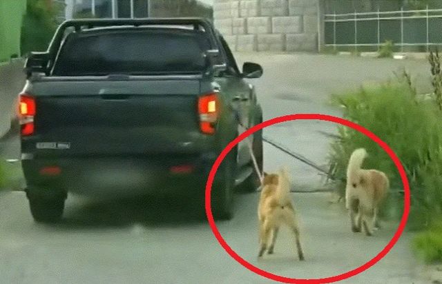 이에 잠시 차가 멈춘 사이 개 1마리가 대변을 보기 위해 앉으려 했지만 다시 차가 움직였고 개는 할 수 없이 볼일을 보지 못한 채 다시 끌려갔다.