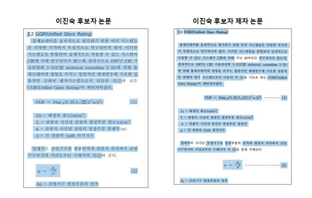 A씨 박사 논문과 이 후보자 논문 두 편을 표절 검사 프로그램인 ‘카피킬러’로 비교한 결과, 표절률은 각각 37%와 48%로 나타났다. 학계는 통상 표절률이 25% 이상이면 실제 표절 여부를 검증해야 하는 수준으로 본다.