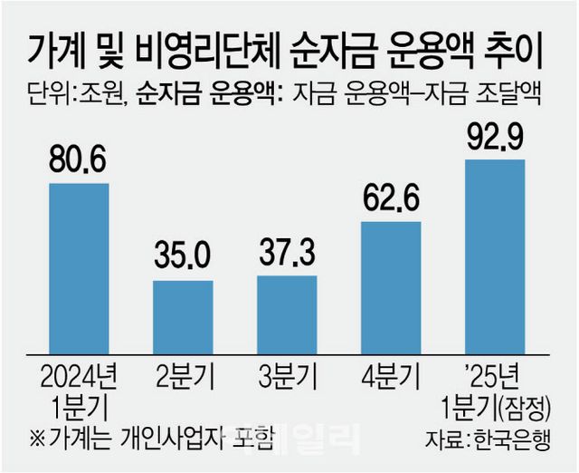 ◇가계 여윳돈 92.9조…통계 작성 이래 역대 최대치