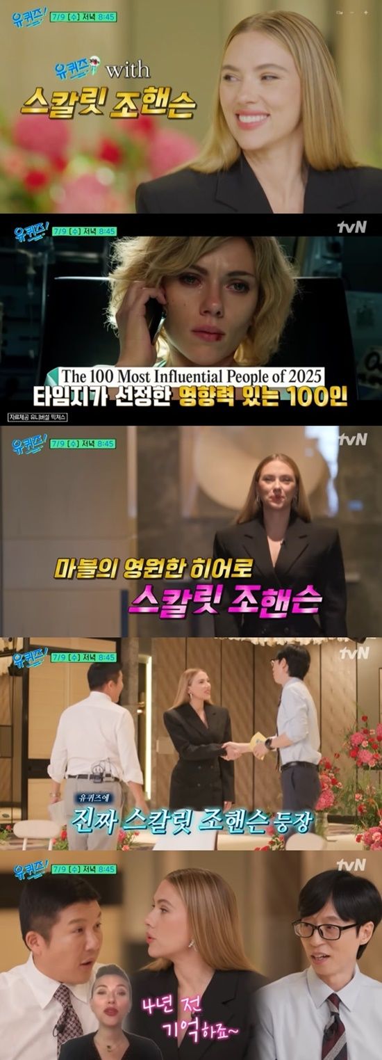4년 후 직접 찾은 한국에서 '유퀴즈' 출연 약속을 지킨 스칼렛 요한슨은 "저희를 기억하냐"는 조세호의 말에 "기억한다"고 바로 대답하며 반가워했다.
