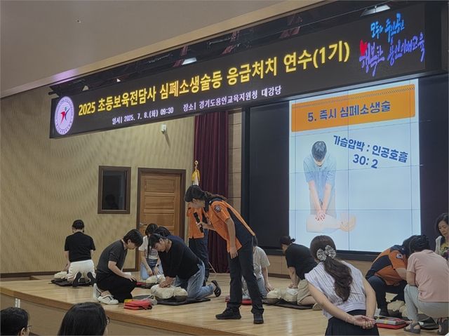 (용인=뉴스영 공경진 기자)용인교육지원청(교육장 김희정)은, 8일 본관 4층 대강당에서 초등보육전담사 67명을 대상으로 실시한 ‘2025 초등보육전담사 심폐소생술 및 응급처치 교육’ 1기 과정을 성공적으로 마쳤다고 밝혔다. 이번 교육은 돌봄교실과 방과후 현장에서 발생할 수 있는 긴급상황에 신속하고 적절히 대응할 수 있도록 전담사들의 안전 대응 역량을 높이기 위해 마련됐다.