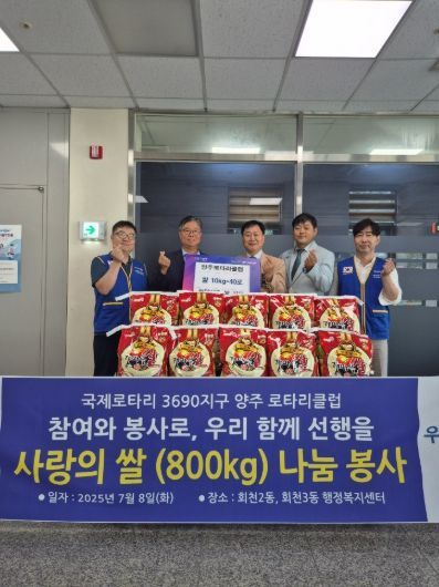 지상민 동장은 “지역사회를 위해 꾸준히 온정을 전해주시는 양주로타리클럽에 깊은 감사를 드린다”며 “전달해 주신 쌀은 도움이 절실한 분들께 소중히 전달하겠다”고 말했다.