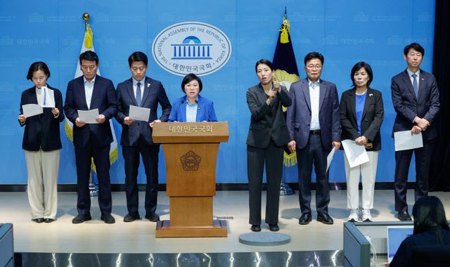 | 국회 과학기술정보방송통신위원회 소속 더불어민주당, 조국혁신당 의원들이 8일 오후 국회 소통관에서 이진숙 방송통신위원장에 대한 감사원 감사결과 관련 이 위원장의 자진 사퇴를 촉구하는 기자회견을 하고 있다. (사진=뉴스1) |