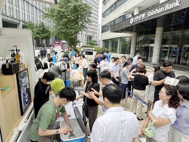 해피빈은 지난 7일 신한은행 창립 43주년을 맞아 신한은행 본점으로 커피차를 보냈다. 신한은행은 2012년부터 13년째 해피빈 최장 파트너사로 매월 '사랑의클릭' 임직원 기부로 어려운 이웃들을 돕고 있다.