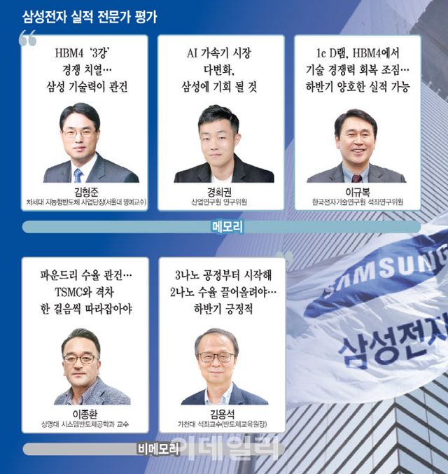 전문가들은 삼성전자 실적이 회복하기 위해서는 근본적인 기술력이 필요하다고 제언했다. 차세대 HBM4에서 10㎚(나노미터·10억분의 1m) 6세대(1c) D램의 기술력을 증명하고, 자사 모바일 애플리케이션 프로세서(AP) ‘엑시노스 2500’을 통해 파운드리 내실을 다져야 한다는 지적이다.