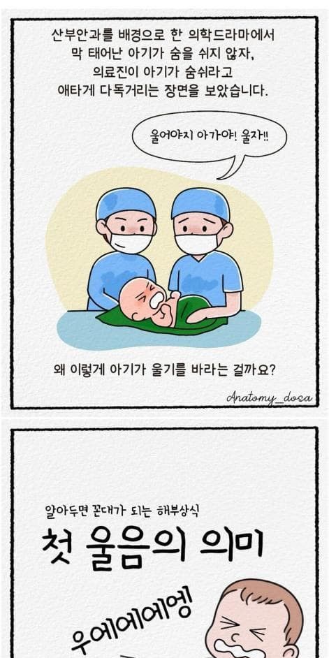 출산 직후 애기 응디를 때려서 울리는 이유