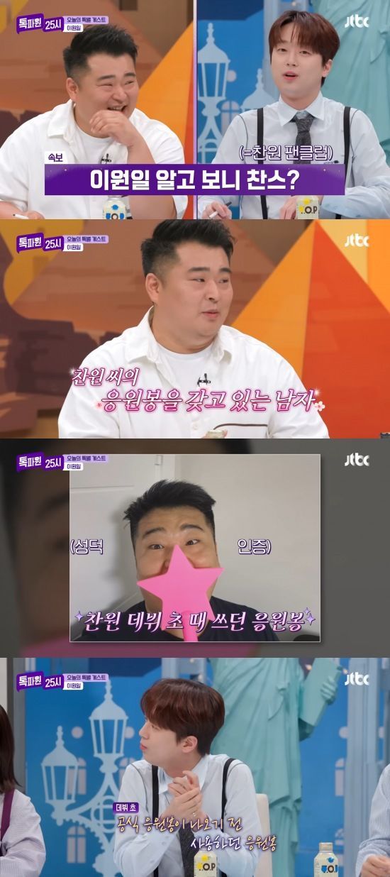뉴시스 보도에 따르면, 이원일은 7일 방송된 JTBC 예능 프로그램 '톡파원 25시'에서 이찬원 데뷔 초창기 응원봉을 소중히 보관 중이라고 했다.