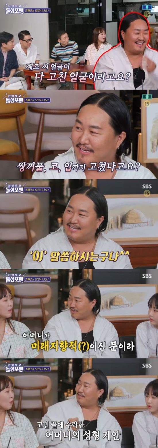 특히 이날 조째즈는 자신의 얼굴이 성형을 한 얼굴이라고 고백해 모두를 놀라게 했다. 조째즈는 "쌍꺼풀, 코, 라미네이트를 했다"면서 "어머니께서 선경지명이 있으셨던 것 같다. 어머니의 권유로 성형수술을 했다. 자연스러워서 마음에 들었다"고 말하며 웃었다.