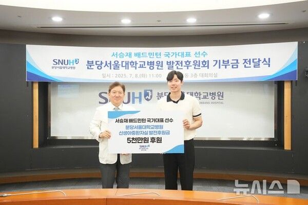 서승재 선수는 “정확한 진단과 치료가 우선적으로 필요한 신생아와 그 가족들에게 조금이나마 도움이 되기를 바라는 마음에 후원금 기부를 결심했다”며 “앞으로도 분당서울대병원에 도움이 되는 의미 있는 일이라면 후원과 지원을 이어가고 싶다”고 밝혔다.