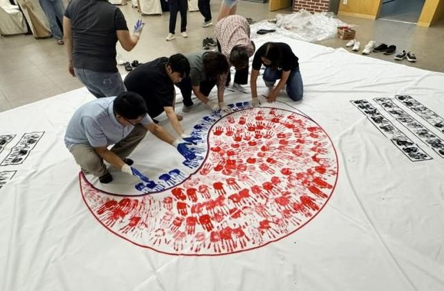 이번 행사는 광복80주년을 맞아 주민총회에 참석한 지역 주민을 대상으로 지역의 단합과 애국심을 고취하기 위해 가로 7미터, 세로 4.6미터에 달하는 대형 태극기를 제작했다. 남녀노소를 불문하고 참여한 주민들은 붉은색과 푸른색 물감에 손을 담가 태극기의 흰 바탕 위에 정성껏 손도장을 찍으며 광복의 의미를 되새겼다.