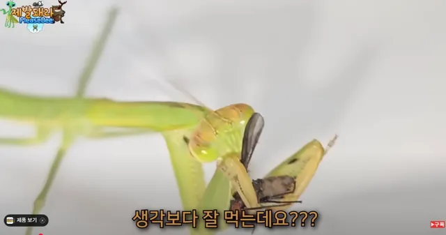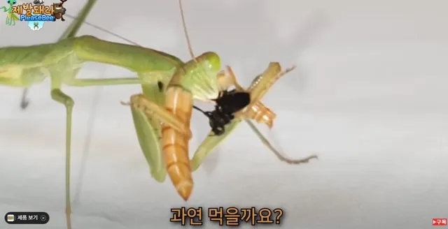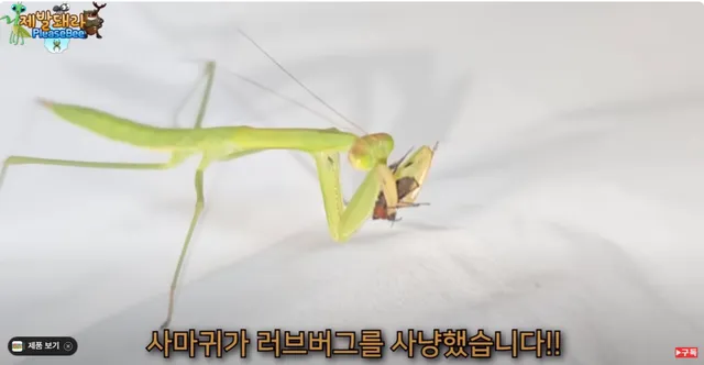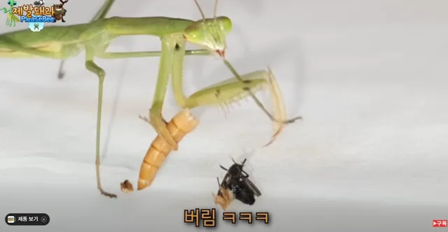 사마귀가 좋아하는 밀웜에 붙여서 다시 시도