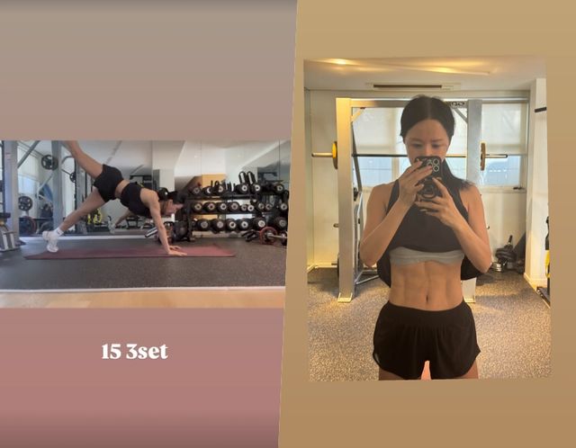 9일 엄정화는 자신의 인스타그램 스토리에 운동 중인 모습을 담은 영상을 짧게 업로드한 것에 이어 운동을 마친 뒤 자신의 몸을 거울에 체크한 사진을 업로드했다.