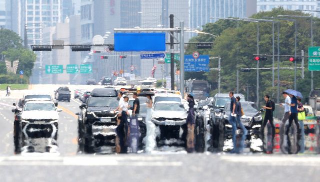 지난 8일 폭염 경보가 발효 중인 서울 여의도 여의대로에 아지랑이가 피어오르고 있다. ⓒ 연합뉴스
