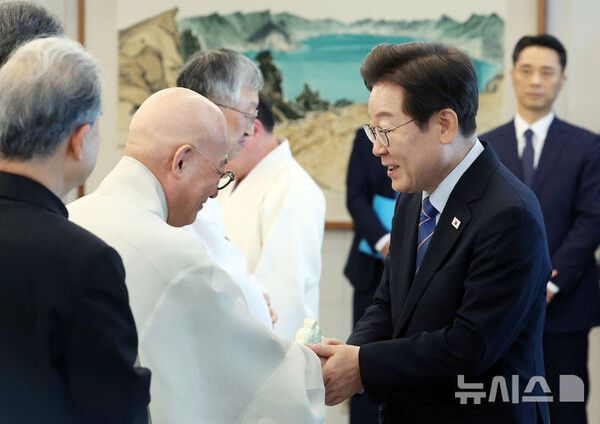 이재명 대통령은 9일 불교와 기독교를 비롯한 7대 종교 지도자들을 만나 "각별한 관심으로 우리 사회가 서로 존중하고 화합하고, 손 잡고 함께 가는 합리적이고 더 포용적인 세상이 될 수 있게 큰 역할을 기대한다"고 요청했다.
