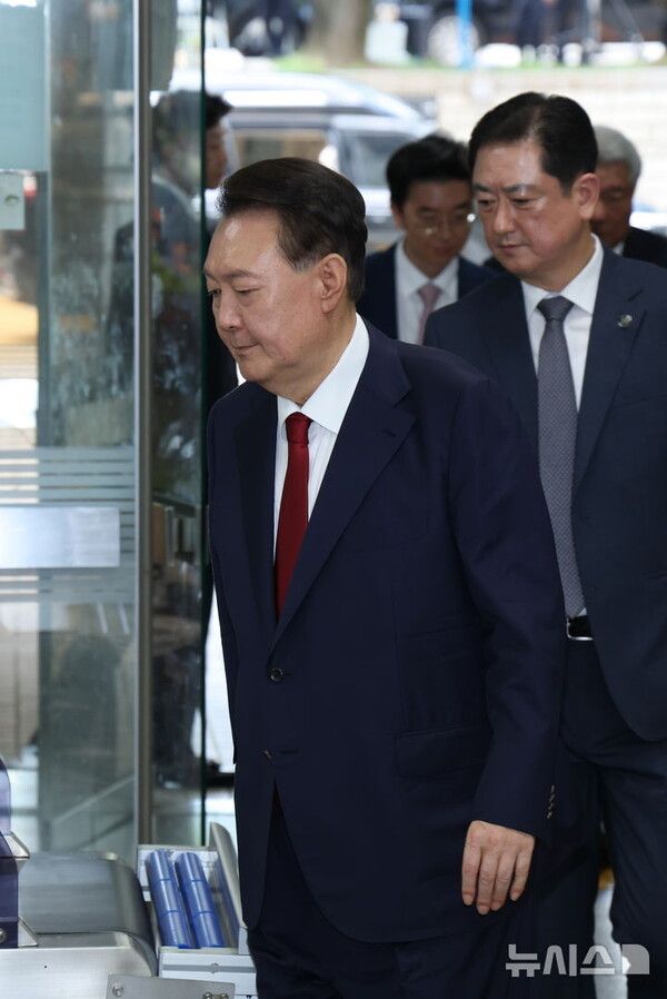 뉴시스 보도에 따르면, 윤석열 전 대통령이 9일 구속영장실질심사를 받기 위해 법원에 출석했다.