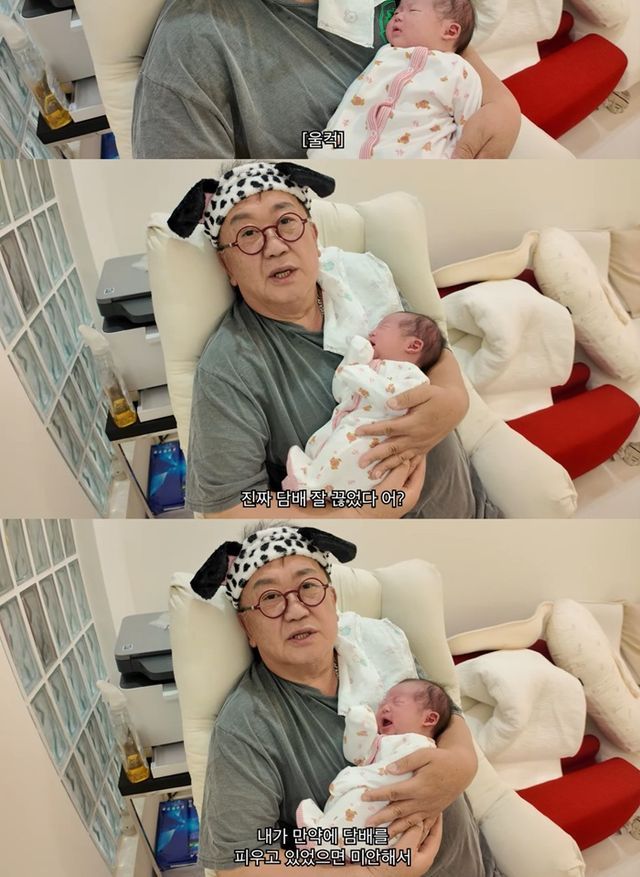 꿈틀거리는 손녀에 불안함을 표한 이용식은 "긴장된다. 할아버지가 진짜 담배 잘 끊었다. 내가 만약 담배를 피우고 있었다면 미안해서 얘를 쳐다보지도 못했을 거다"라며 금연을 했던 보람을 느끼고 있음을 전했다.