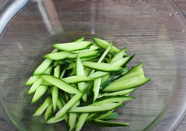 오이볶음을 만들 땐 먼저 오이를 2~3개 정도 준비해 깨끗이 씻은 뒤, 길이 4~5cm 정도로 도톰하게 어슷썰기 한다. 씨가 많은 중간 부분은 반으로 갈라 씨를 긁어내도 좋다. 자른 오이에 소금 0.5작은술을 뿌려 10~15분가량 절여둔다. 이 과정을 통해 물기를 빼주면 볶을 때 질척해지지 않고, 더 아삭한 식감을 얻을 수 있다. 절인 오이는 면포나 키친타월에 싸서 꾹 짜 물기를 최대한 제거한다.
