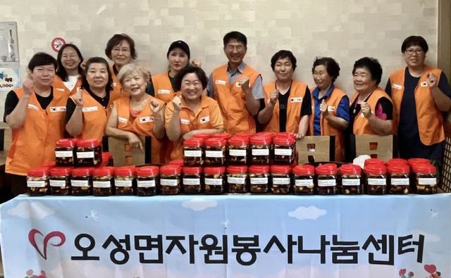 이날 봉사에는 자원봉사 나눔센터 회원 및 관내 자원봉사자 15여 명이 참여하여, 정성껏 담근 오이양파장아찌 50통을 오성면 홀몸노인, 장애인 및 다문화가정 등 도움이 필요한 이웃에 전달했다.