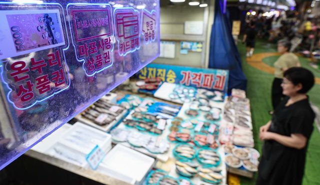 4일 서울 마포구 망원월드컵시장에 온누리 상품권, 지역화폐 사용 안내문이 게시돼 있다. / 뉴스1
