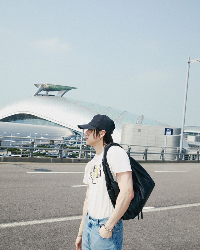 그는 'FENDI ROMA 1925' 문구가 새겨진 화이트 그래픽 티셔츠에 여유로운 핏의 데님 진, FF 로고 베이스볼 캡을 매치해 럭셔리함과 편안함이 조화를 이루는 공항패션을 연출했다. 여기에 펜디 FW25 컬렉션의 펜디 핏(Fendi Fit) 트레이너와 실버 주얼리로 은은한 포인트를 더했다.