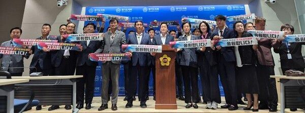 그는 "이번 도당이 할 일은 정권의 폭주를 견제하고 내년 지방선거에서 반격의 토대를 재건하는 것"이라며 "보수의 둑이 무너지는 최대 위기를 극복하고 보수 재건을 해낼 유일한 방법은 내년 지방선거에서 보수의 선봉이 될 유능한 인재를 영입하고 승리하는 것"이라고 강조했다.