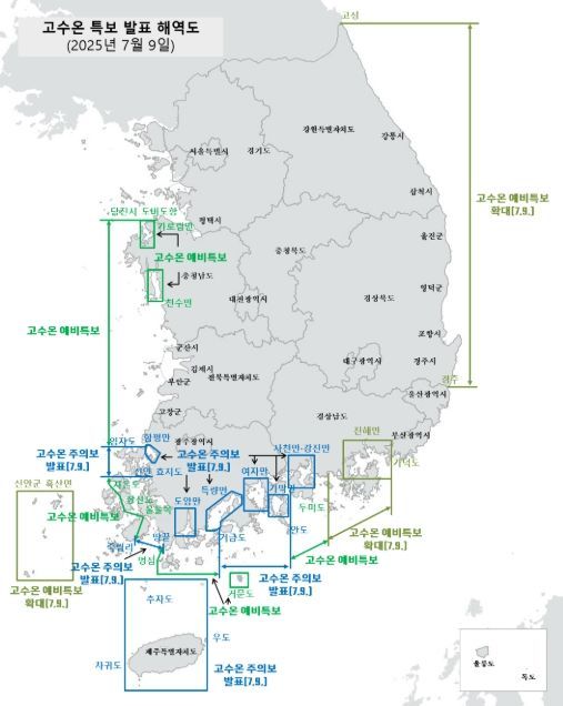[와이뉴스] 해양수산부는 7월 9일 11시부로 고수온 위기경보 ‘경계’단계를 발령했다고 밝혔다.