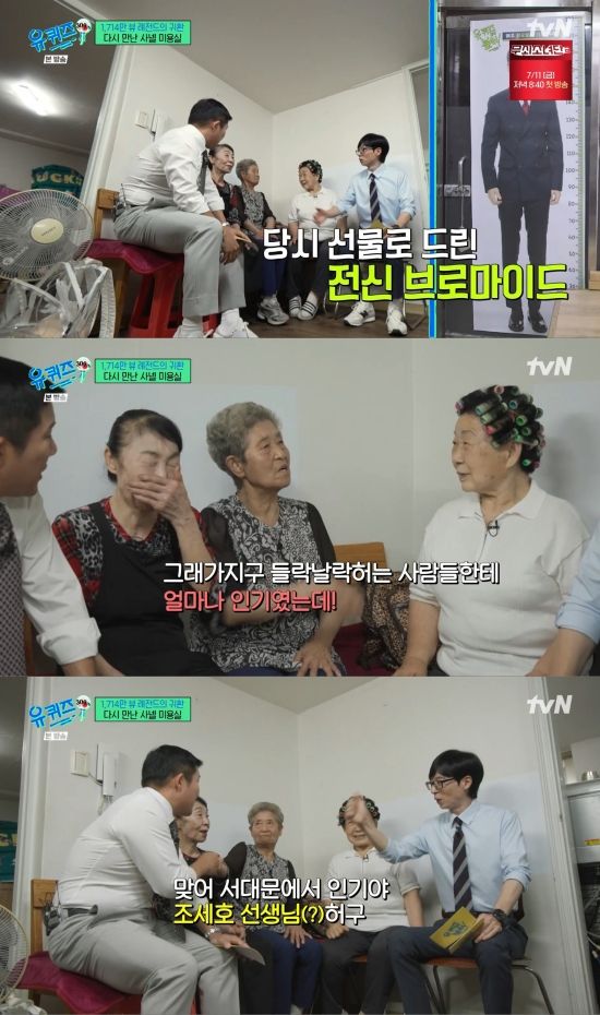 김종순 여사는 "복지관 다닐 적에 초상화도 걸어놨었다"라며 귀띔했고, 조세호는 "저희 전신 브로마이드가 있었다"라며 거들었다.