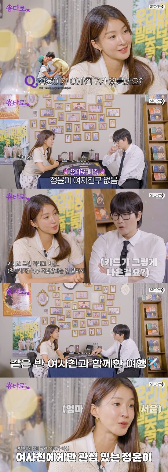 그러자 이시영은 "그건 아니고, 정윤이가 너무 거짓말을 하는 것 같더라"며 "저번에 같은 반 여자친구와 함께 해외 여행을 갔는데, 여행 5일 동안 제가 아닌 그 친구만 챙기더라. 승무원이 나눠주는 키즈밀도 자기가 대신 나눠준다고 하고, 뷔페에서도 그 친구의 그릇을 들어주더라. 그런 모습을 처음 봤다"고 털어놨다.