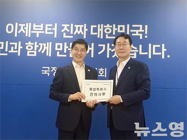 이날 정명근 화성특례시장은 화성시의 일반구 설치, 국가기관 유치, 화성교육지원청 신설 등 시정 주요현안도 설명하며 관련 건의문을 이해식 정치행정분과장에게 직접 전달했다.