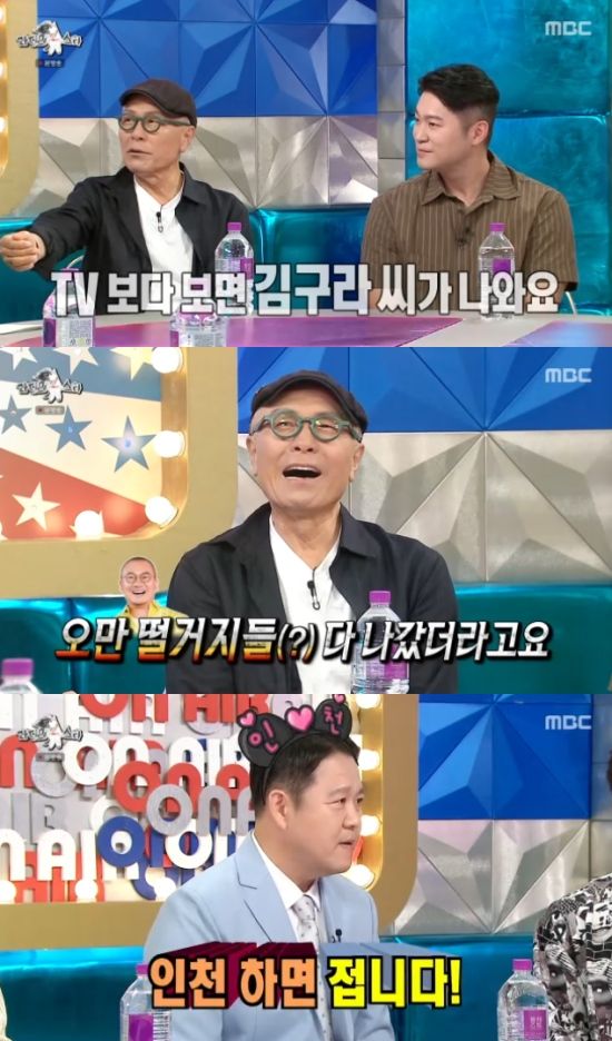 이에 김구라는 허영만이 진행하는 '백반기행'의 인천편을 언급하면서 "떨거지들이 많이 나갔더라"고 장난을 치면서 "인천하면 저다. 연예인 중 비공식적으로 인천 얘기를 제가 제일 많이 한다"고 강조했다.