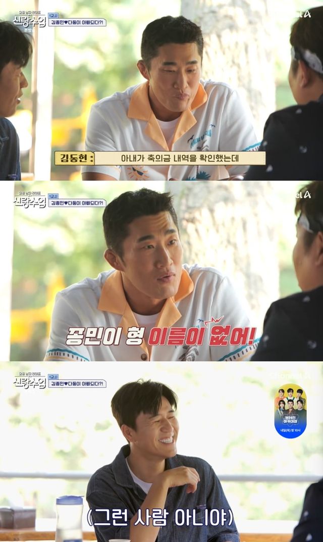 당황한 김종민은 "갔다면 무조건 냈을 거다"라고 말했고, 김동현은 "근데 형이 사회생활 하는데 안 내고 그런 사람 아니지 않냐. 저도 3분 정도 섭섭했다. 뭐야 하고"라며 당시 서운했던 마음을 털어놨다.