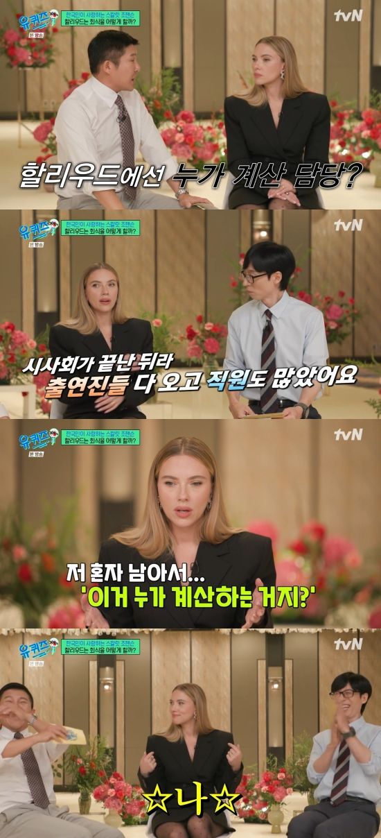9일 방송된 tvN '유 퀴즈 온 더 블럭'(이하 '유퀴즈')에서는 스칼릿 조핸슨이 게스트로 출연한 장면이 전파를 탔다.