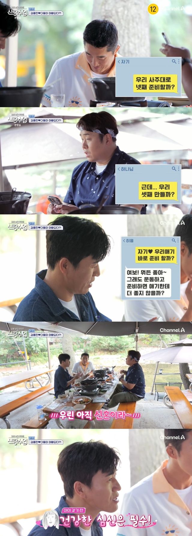김종민은 '자기 우리 애기 바로 준비할까?'라고 문자를 보냈고, 김동현과 문세윤은 각각 '우리 사주대로 넷째 준비할까?', '근데 우리 셋째 만들까?'라고 전송했다.