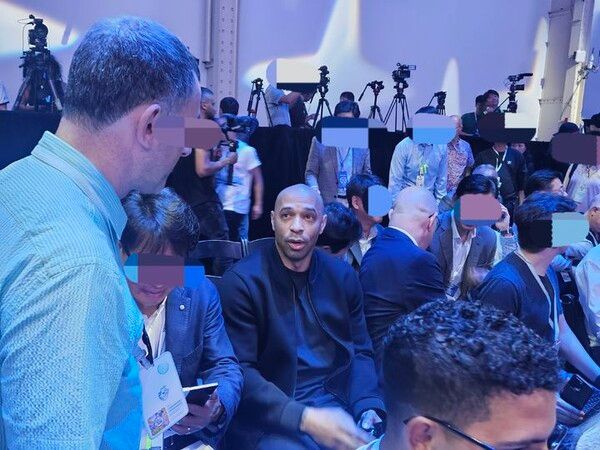 뉴시스 보도에 따르면, 9일(현지 시간) 미국 뉴욕 브루클린에 위치한 듀갈 그린하우스(Duggal Greenhouse). 이날 갤럭시 언팩 2025 행사 시작 전 앙리 선수가 행사장에 자리잡아 참석자들과 인사를 나누는 모습이 포착됐다.