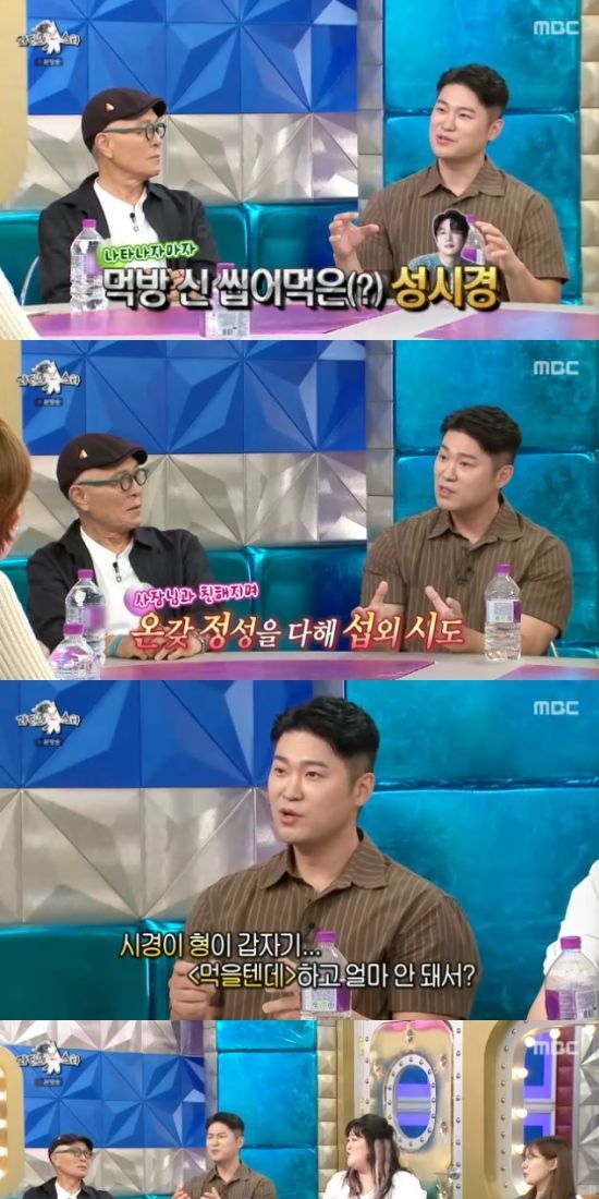 그리고 이날 '최자로드'의 최자가 먹방계 라이벌로 성시경을 꼽으면서 "시경이 형이 '먹을텐데'를 하면서 먹방 신을 씹어먹은 느낌이다. 자기가 좋아하는 식당은 열정적으로 소개하는 스타일"이라고 했다.