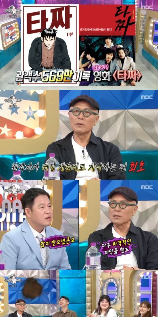 허영만은 "요즘 같으면 1000만 관객이 넘은 것과 마찬가지"라면서 "제가 '타짜'를 러닝개런티로 계약을 했다. 원작자가 러닝개런티로 예약을 한건 최초다. 돈을 많아 받았고, 파격적이었다"고 솔직하게 전했다.