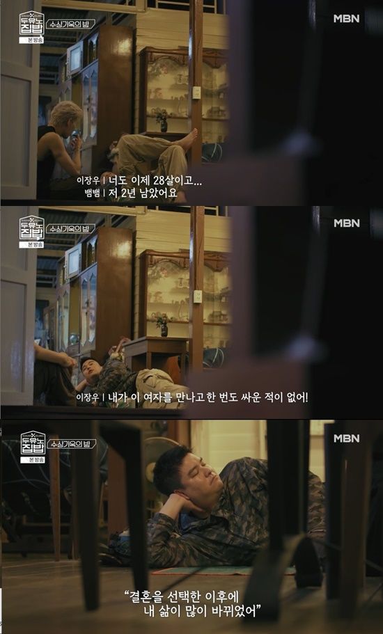 뱀뱀이 "8년 연애했는데도 결혼하면 더 좋아질 거라는 느낌이 드느냐"고 물었고, 이장우는 "지금까지 이 여자를 만나고 한 번도 싸운 적이 없다"며 "그 전 연애는 싸움꾼이었다. 그런데 이 여자하고는 신기하게 싸운 적이 없다. 결혼 석택한 후에 내 삶이 많이 여유로워졌다"고 설명했다.
