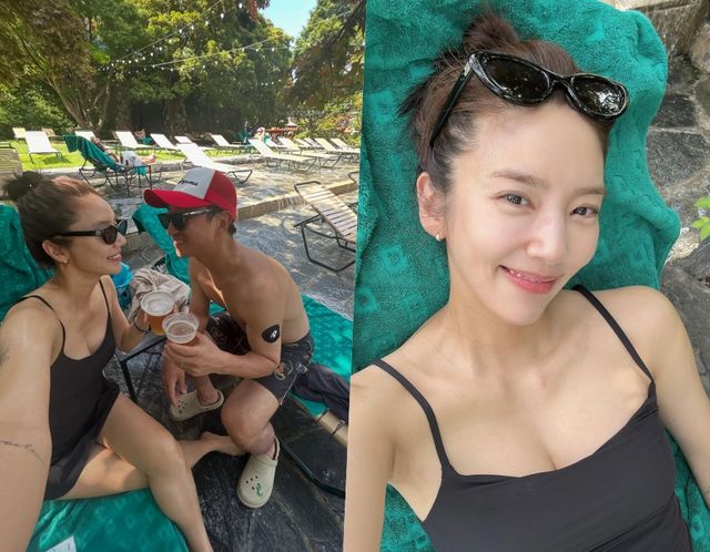 사진 속 손담비는 이규혁과 함께 휴양시설을 찾아 여유로운 시간을 보내는 모습이다. 특히 손담비는 블랙 색상의 원피스 수영복을 입고 있는 모습으로, 출산 3개월 이후라고 믿기 힘들 만큼, 늘씬한 몸매를 자랑해 감탄을 자아냈다.