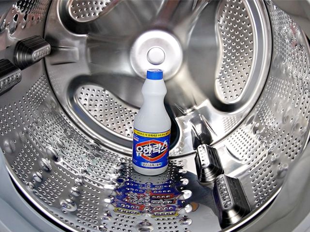 세제통이 아니라 세탁조 안에 직접 락스를 부어주세요.