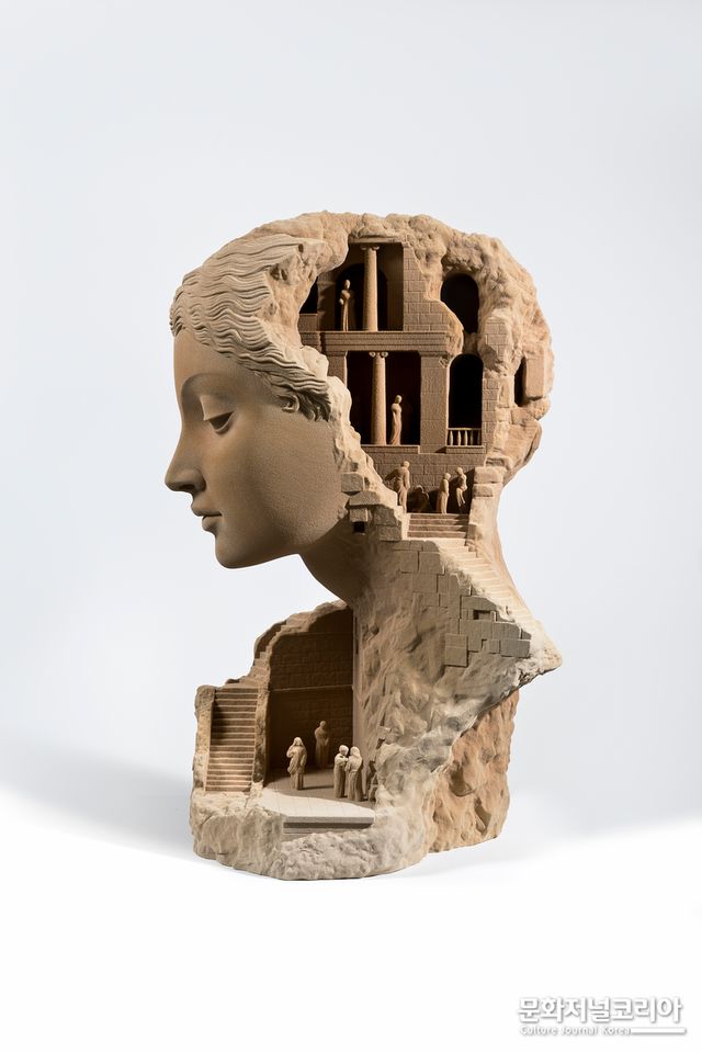 고대 조각을 연상시키는 형상과 현대 문명의 오브제가 공존하는 그의 작업은, 마치 미래의 고고학자가 발굴한 유물처럼 다가오며 과거와 미래 사이에 존재하는 시간의 층위를 시각화한다.